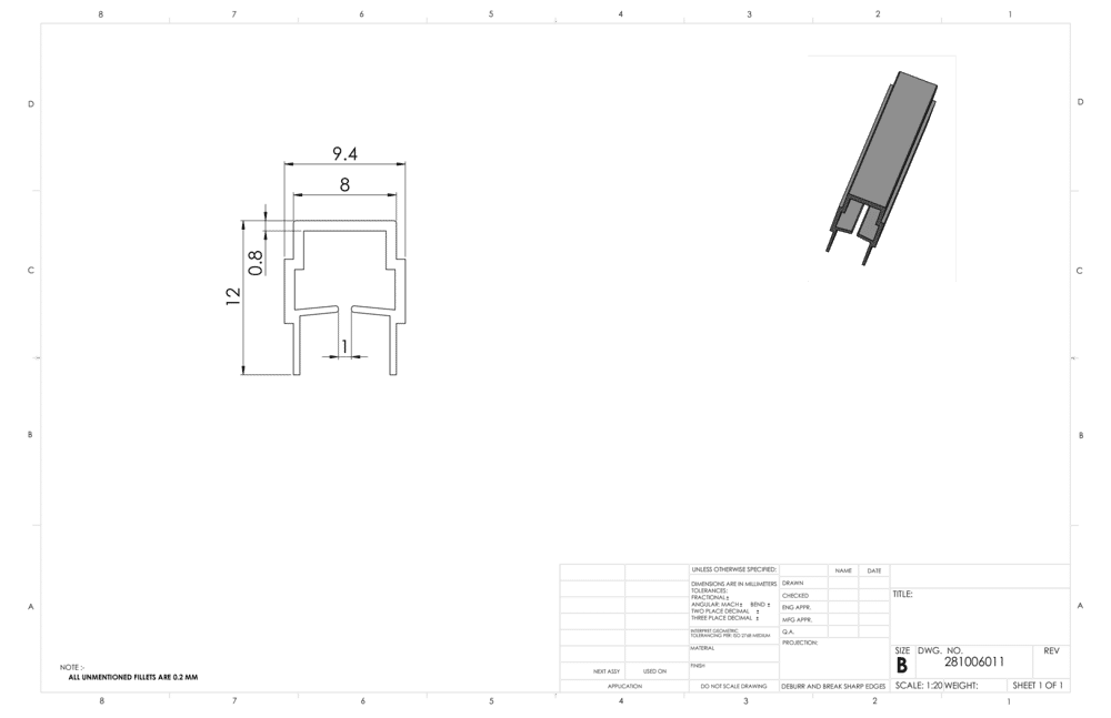 Lichtes Maß zwischen den Profilen L1 + 22,5mm