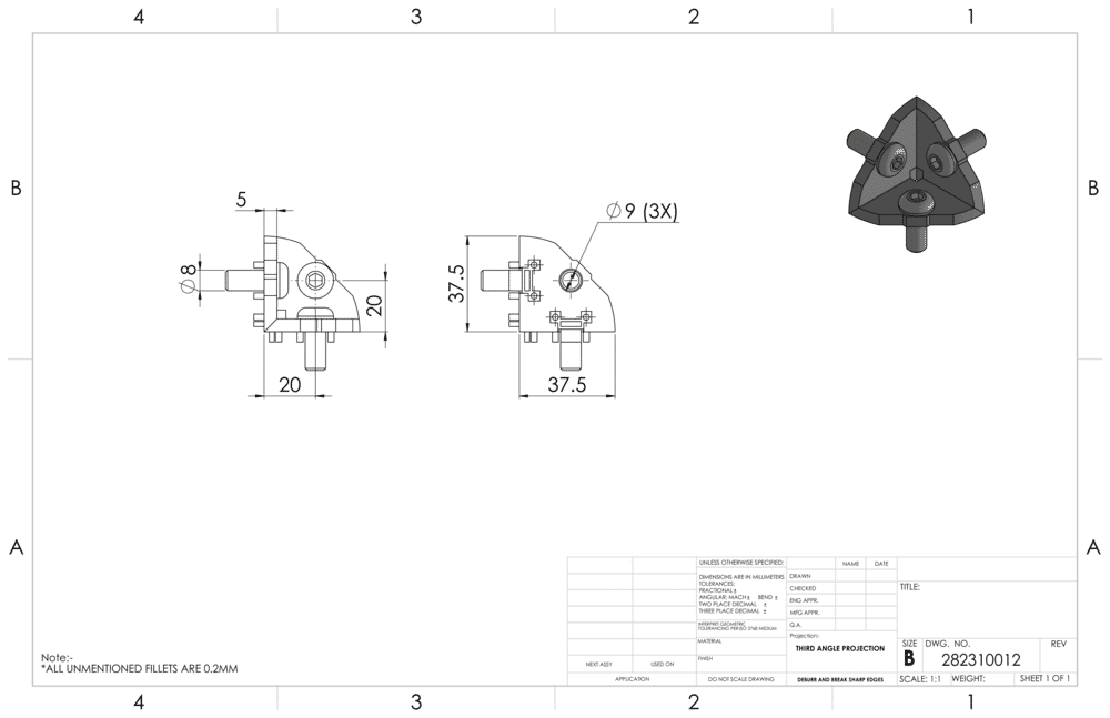 Gewindebohrung M8, Gewindetiefe: 25mm