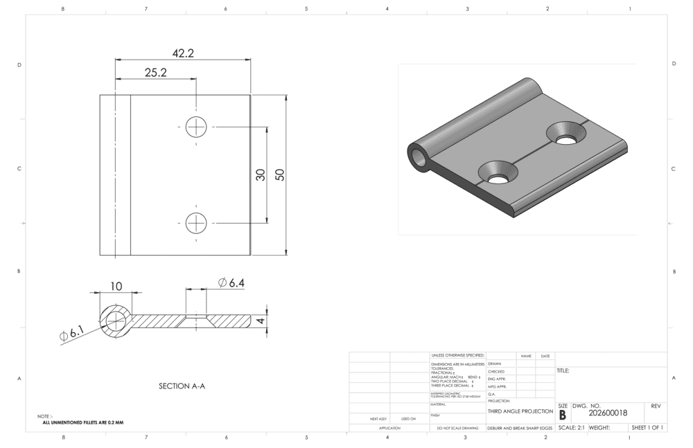Für ein komplettes Scharnier wird benötigt: 2 x Flügel; 1 x Achse,2 x Abdeckkappe