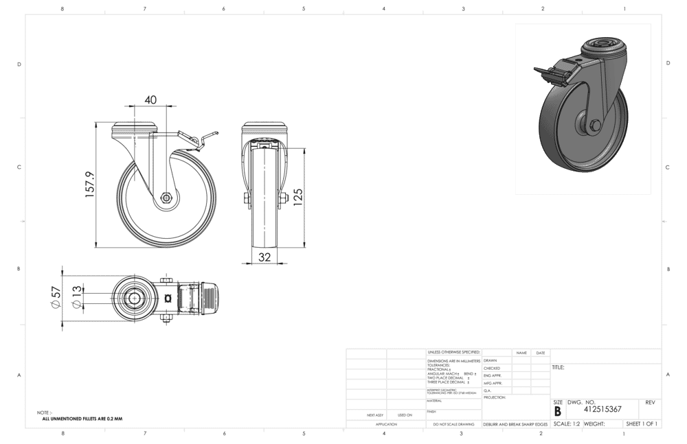 Arretierung verhindert Rollen und Drehen des Rades.