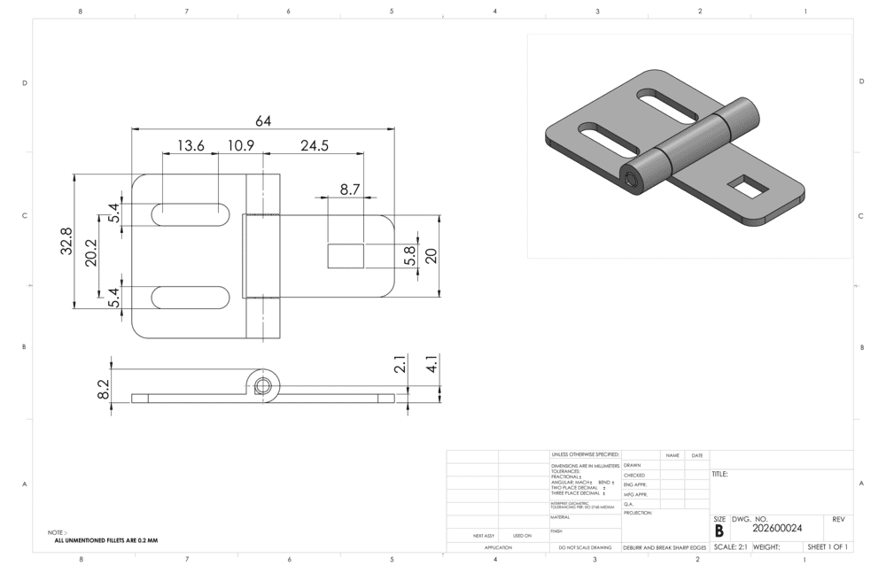 Metallscharnier leicht – nicht aushängbar, 64x40 mm, Nut 5/6/8