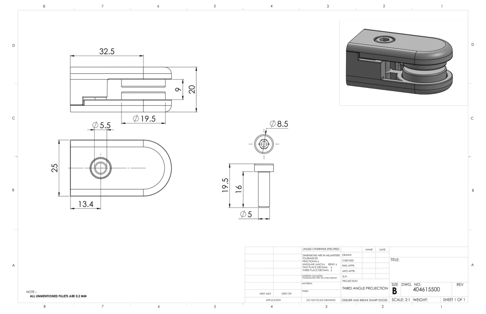 Flächenelement-Befestigung am Profil ohne zusätzliche Bearbeitung. Durch das Anziehen der Klemmschraube wird sowohl die Zwinge am Flächenelement wie auch am Profil fixiert. Nicht geeignet für Gitter und Wellengitter. Für Flächenelemente von 2 –9 mm