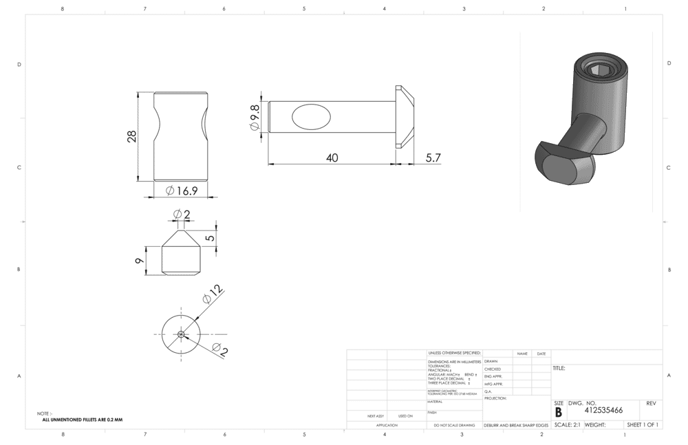 Sacklochbohrung DB17: Durchmesser: 17mm,