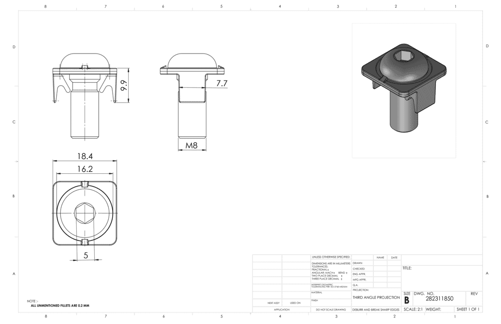 Schraubenkopf wird im Abstand von 20,0 mm eine Bohrung von D = 7,0 mm empfohlen