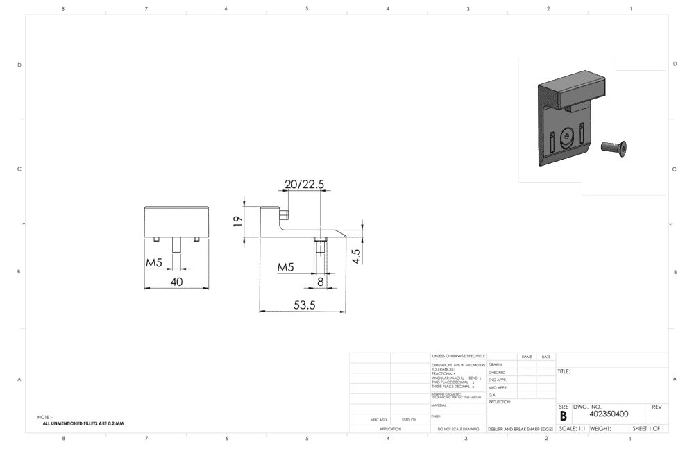 Durch den Anschlagwinkel ist ein Verriegeln von Türen mit Rahmen ohne Verkratzen oder Beschädigen der Aluminiumprofile gewährleistet. Die Befestigung des Anschlagwinkels erfolgt an der Türzarge, womit er zur Begrenzung der Bewegung mittels Aufbaukeil und Endanschlag dient. Als Auslegungskriterium für die Türmaße ist die Dicke des Anschlagwinkels 8 mit 4,5 mm zu berücksichtigen.