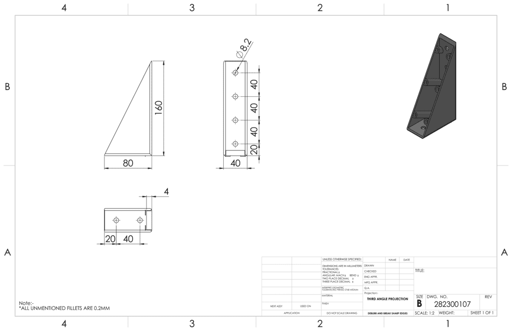 Winkel 160 × 80, Nut 8