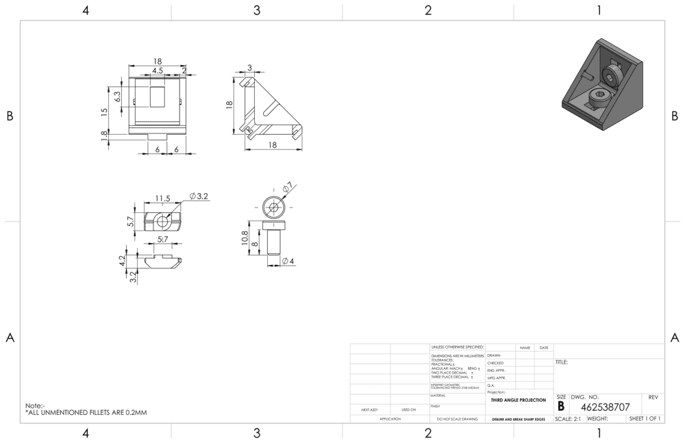 Winkel 20 × 20 silber pulverbeschichtet, Nut 6, inklusive Befestigung Nut 6/6