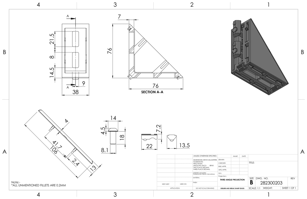 Winkel in verschiedenen Größen und Ausführungen erhältlich. Sowohl zur Montage in der Nut, als auch auf geraden Flächen geeignet (dazu die Zentriernase herausbrechen). Abdeckkappe zum Schutz vor Verschmutzungen. Einfache Montage ohne Profilbearbeitung. Einfachere Montage der Winkel durch Nutensteine mit Führungssteg