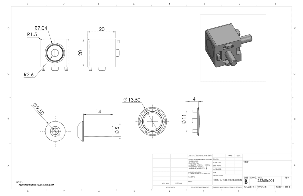 Gewindebohrung M5, Gewindetiefe: 14mm