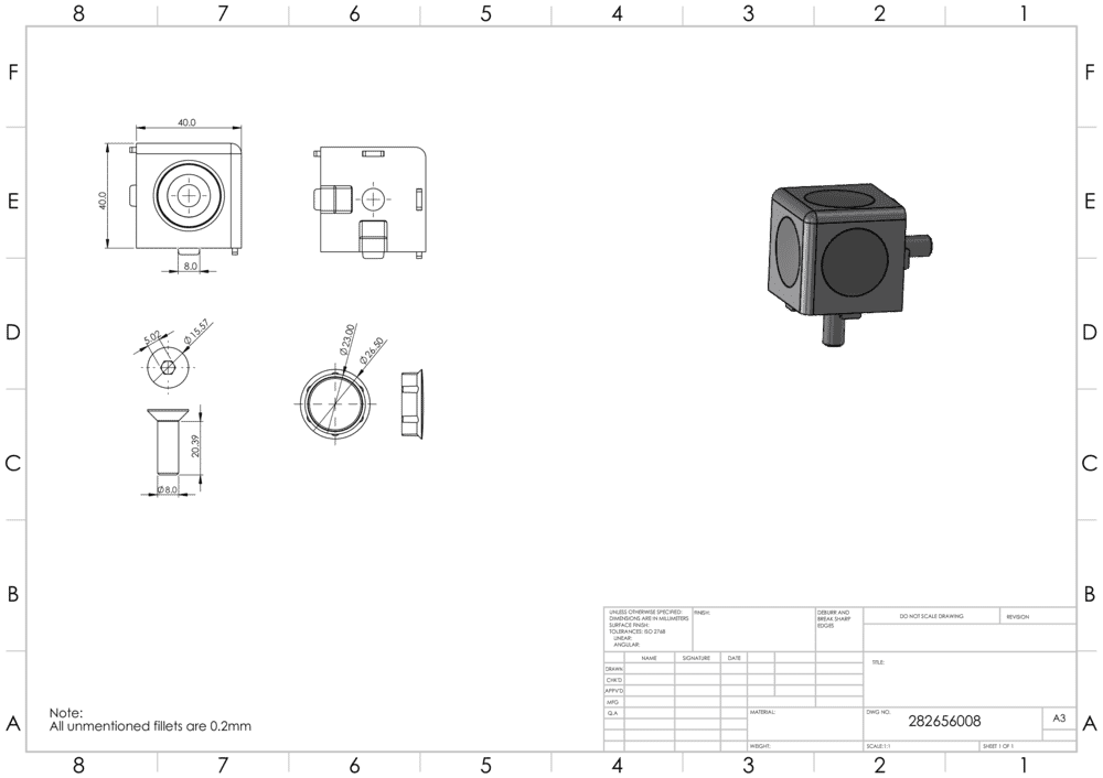 Gewindebohrung M8, Gewindetiefe: 25mm