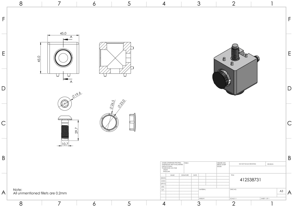 Würfelverbinder 45/2 alufarbig lackiert