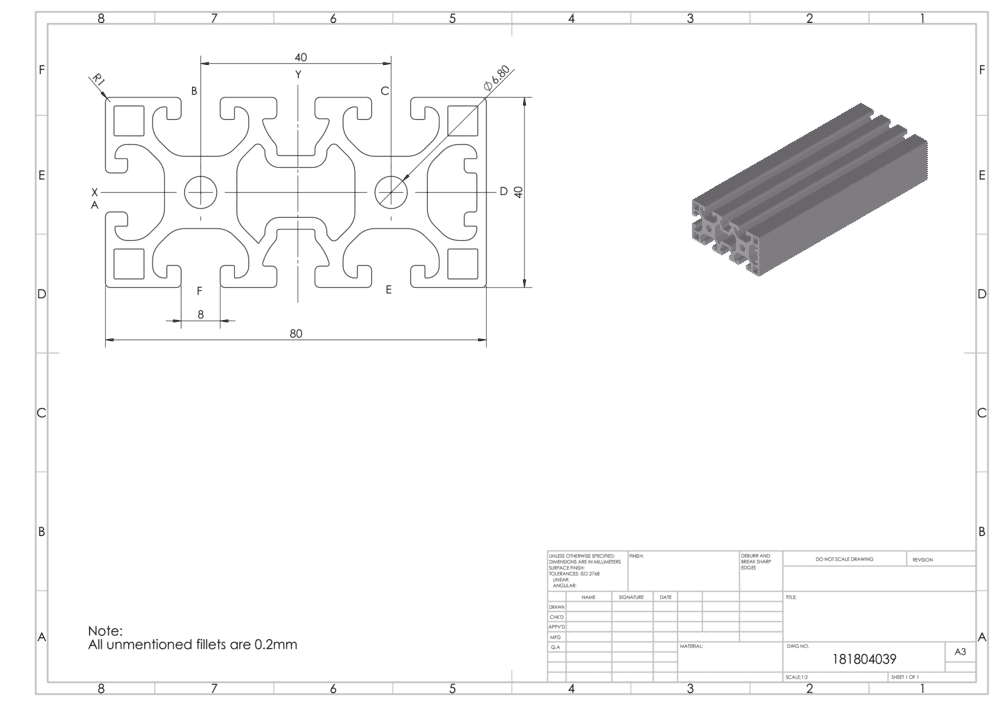 X Profil, 80x40 mm, 1N, Nut 8/Spezialnut X