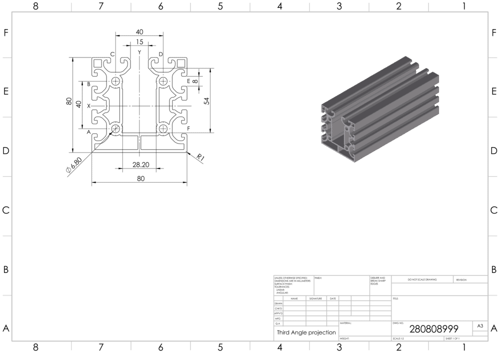 X Profil mit integriertem Kabelkanal 15mm, 80x80 mm, 2N, Nut 8