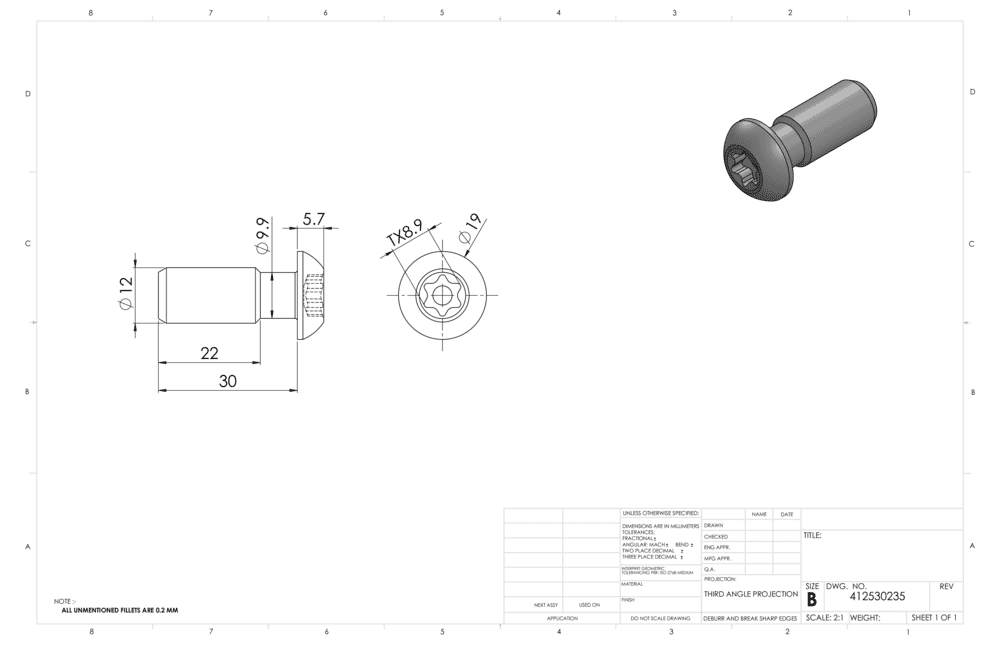 Bearbeitung Profil 2: Gewindebohrung: M12, Gewindetiefe: 30mm