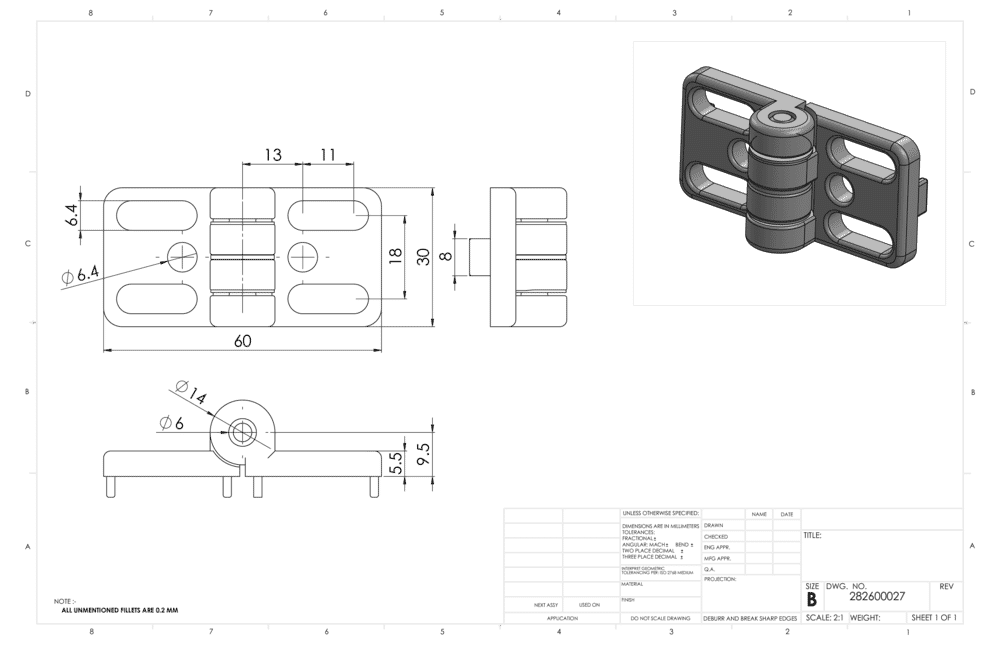 Zinkdruckguss-Scharnier mit Langlöchern - nicht aushängbar, 60x40 mm, Nut 8